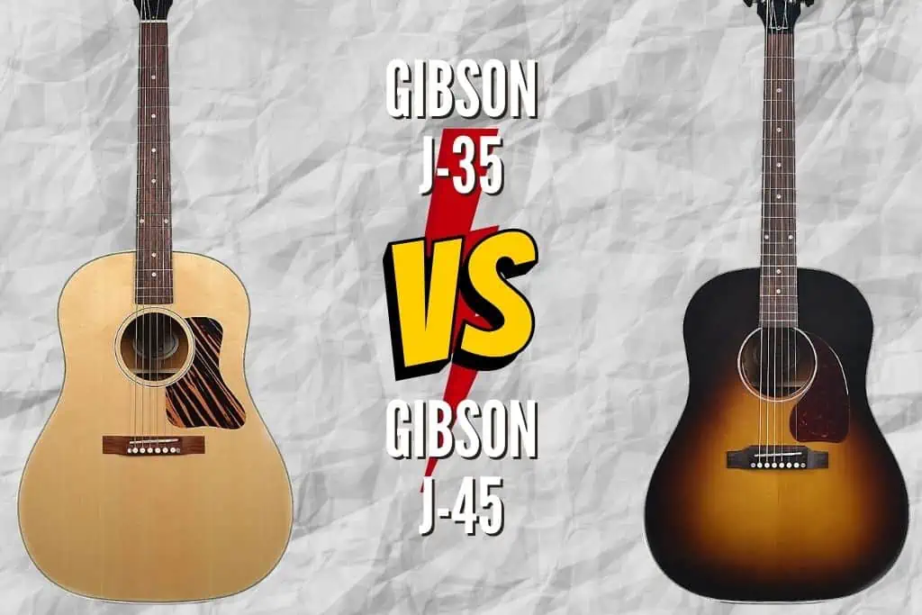 These models differ in visuality as well. They both have distinctive looks with their different headstock and pickguard design. The company never compromises the old Gibson logo headstocks, even in the re-launches of the J-35s. And the J-45s have the classic modern headstock.